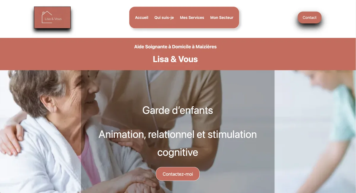 Exemple de réalisation d’un site web professionnel pour une aide-soignante à domicile, avec un design élégant et sobre.